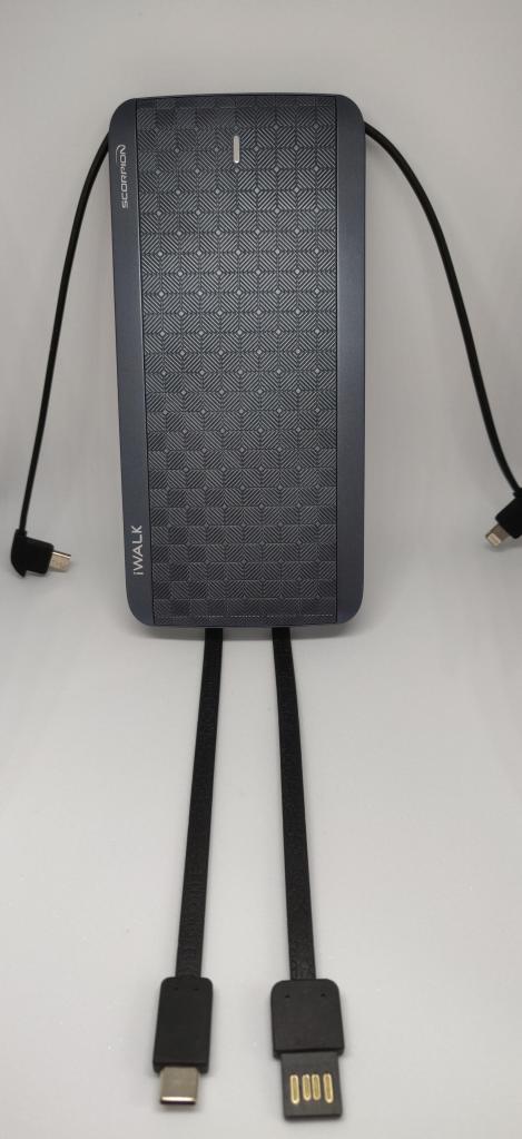 From the name of the device, the scorpion, it is not hard to notice why it got its name. With three cables attached to the power bank, it allows one to charge multiple devices (with different ports) – charging cables include the USB-C, Micro-USB and Lightning cables. It has a USB head to allow charging of the power bank with a wall plug or even your laptop. I particularly liked this feature as I am not required to bring additional cables to charge my power bank.