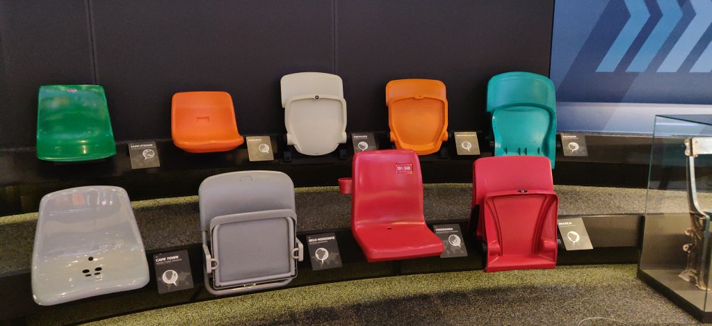 A small cinema that provides a pretty panoramic view also showcases a brief history of FIFA, and the waiting area to enter the cinema is set-up with replicas of chairs from stadiums that hosted the FIFA globally!