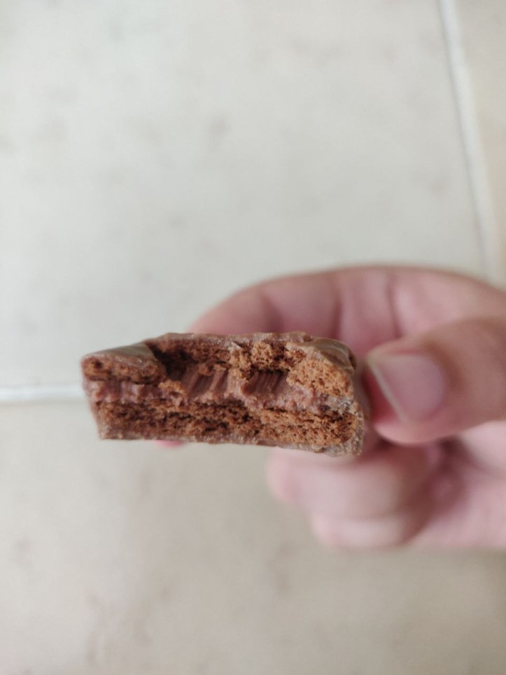 It has two crispy biscuits, wrapping a smooth hazelnut cream and is coated with a layer of chocolate. This product does sound familiar to Tim Tam but tastes very different as the texture of the biscuits are on the crispier, wafer-y side. If you are a nut lover, this cream filling makes this chocolate-coated biscuit such a treat!