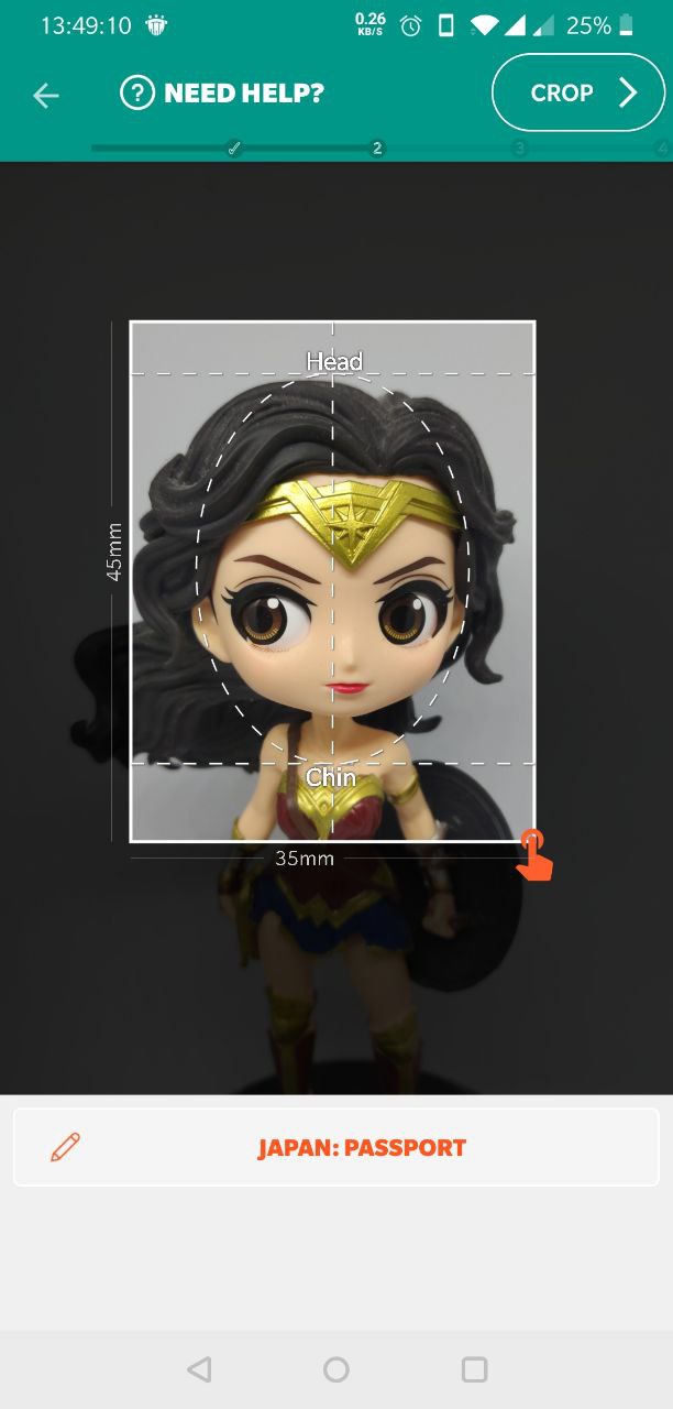 - You can then edit your photo by scaling the size of the rectangle around the face. A guideline will be shown on where the top of the head and chin should be within the photo. Once satisfied, select “Crop”.