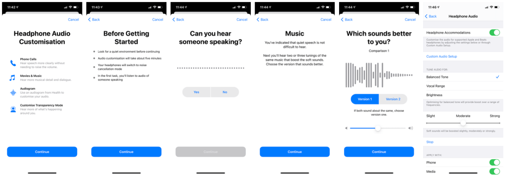 Here, you will be able to go through a setup process which allows you to tune your audio and set the range of your transparency mode. You can then make the necessary adjustments to allow you listen to your audio with greater clarity. Honestly a pretty neat in-build feature which I personally think more people should know about!