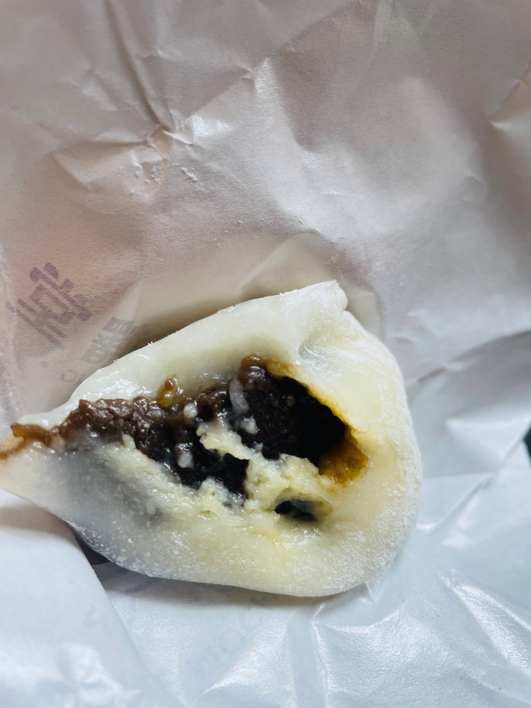 The classic peanut mochi – the peanut with sugar gave the mochi a good crunch; the different sizes of crushed peanuts gave the mochi a good texture. It was not too sweet and was very satisfying. The mochi was stuffed with peanuts – it was so good.