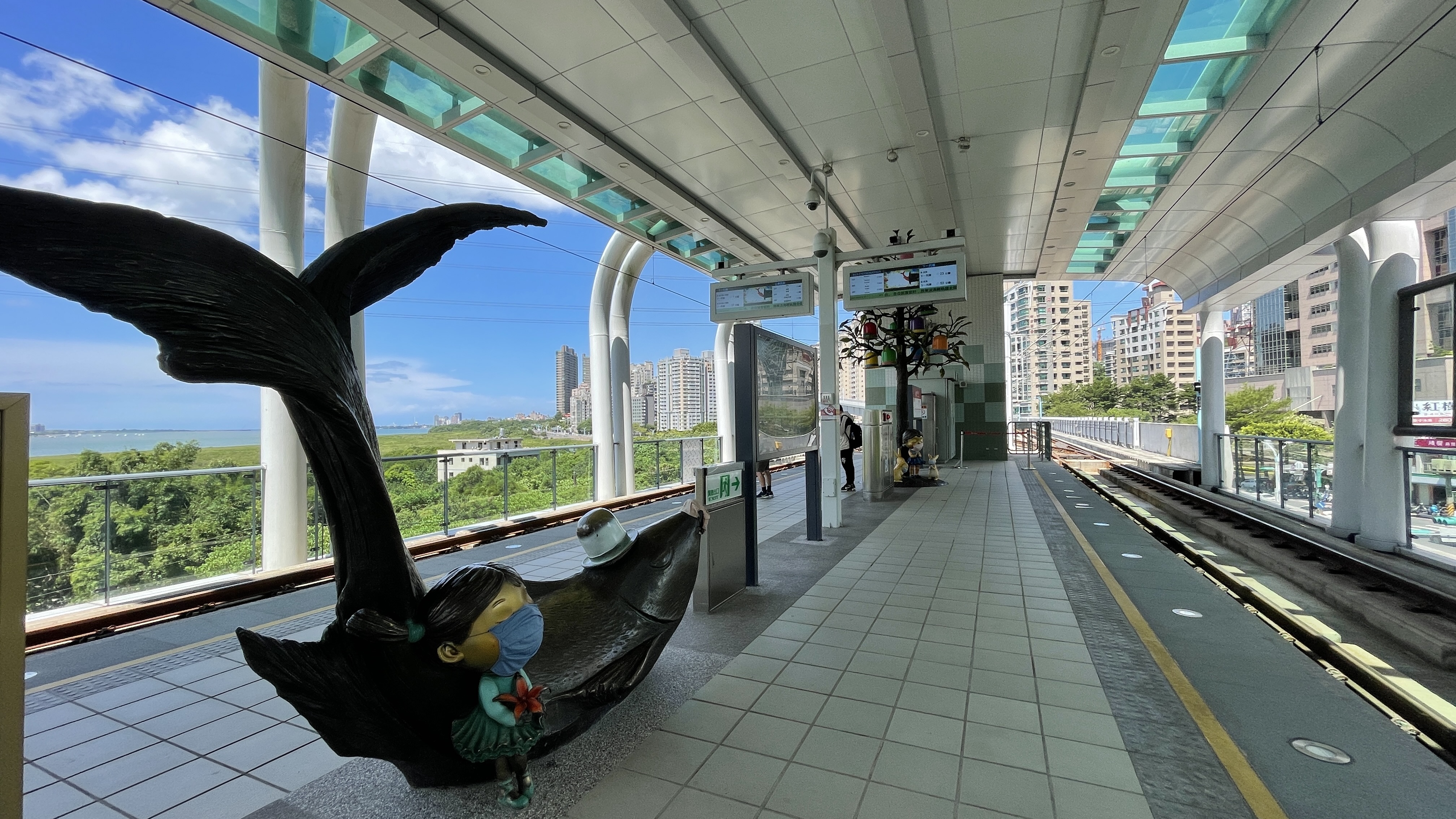 From Taipei City, one can easily hop on and take the red line towards Tamsui – but instead of taking the train to the Tamsui stop, stop at Hong Shu Lin instead. When at the station, change to the Danhai Light Rail (you will need to tap your card before entering the light rail). It will take approximately 30 minutes from Hong Shu Lin to the final destination, Tamsui Fisherman’s Wharf. Note that this is a longer journey than heading to Tamsui and changing over to the local bus, but take this route if you’re not tight on time. Apart from having a pleasant view, you can also see the different sculptures by Jimmy in each of these stations.