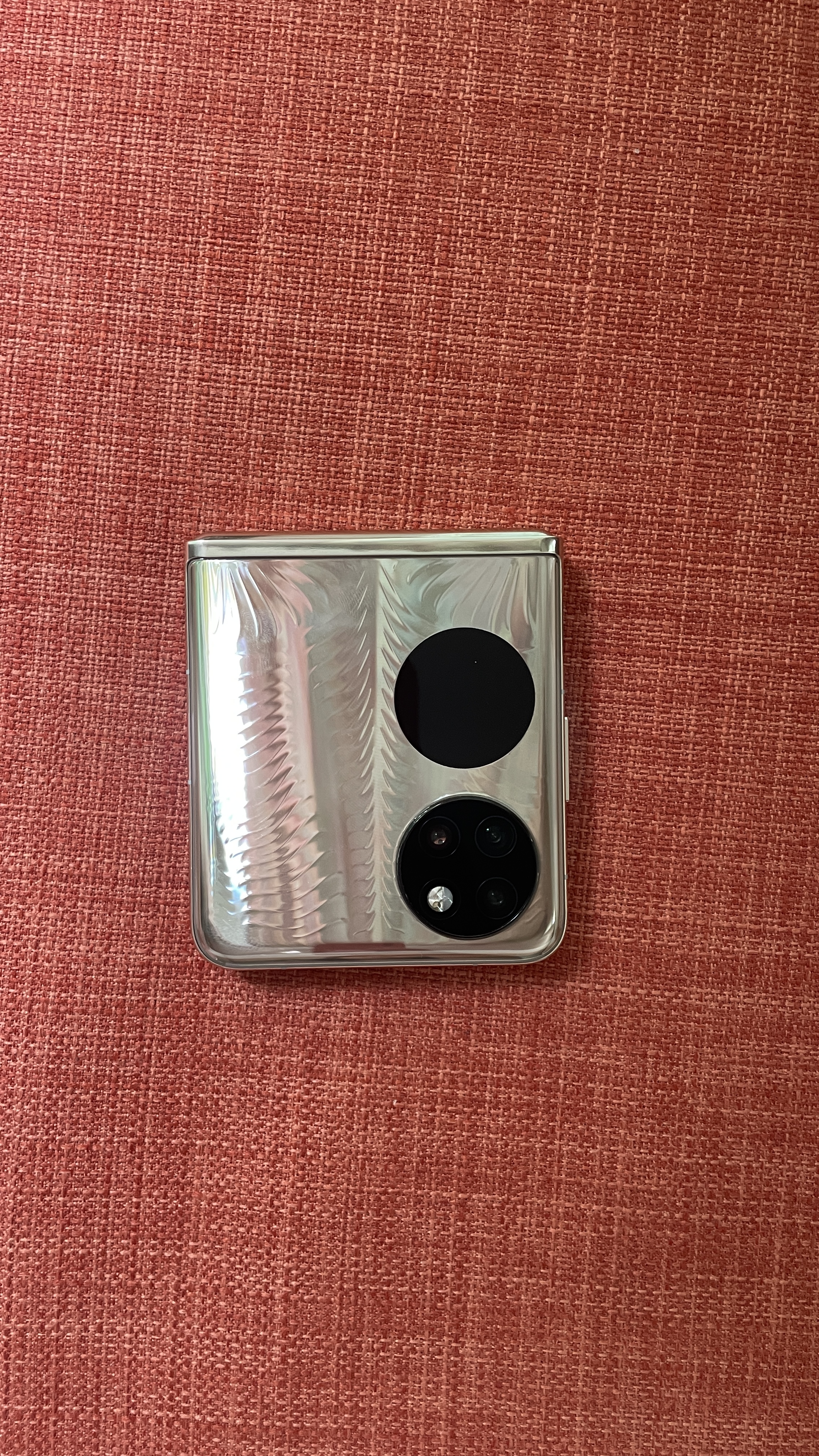Double-ring design (as compared to the top rectangle on a Samsung Flip3) – one serves as the cover screen, the other, the cameras.