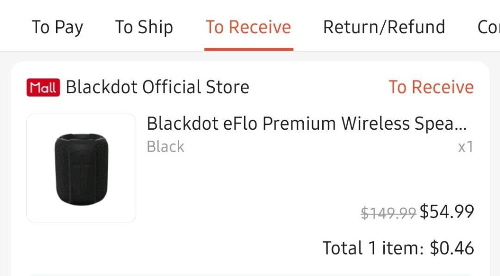 The reason that I said this is a true sale and a good one at that is that we took a chance and managed to grab a voucher for a Blackdot wireless speaker with a list price of S$54.99. And we paid just S$0.46 (inclusive of delivery) for it.
