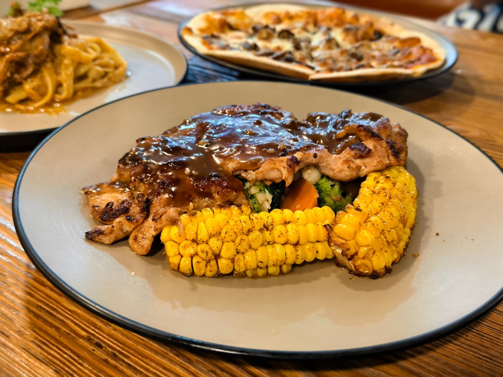 The boneless grilled chicken thigh came juicy and tender, served with rich brown gravy together with greens and corn ribs. While fries are the norm, the corn ribs were a delightful surprise — sweet, salty and highly satisfying. The ribs complemented the chicken beautifully and turned a common dish chicken chop dish into one worth remembering. I guess the chef’s recommendation was on the menu for a reason!