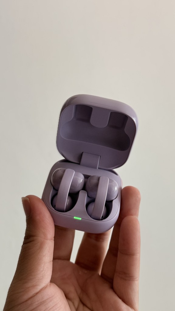 The clip-on design is secure and easy, and Sony provides small air cushions if you want a more secure fit or have smaller ears. Even without them, the earbuds remain in place during activity (I tried skipping with it on and it didn’t fall off) or extended wear. The case is small – classic LinkBuds design – and the earbuds fit inside perfectly.